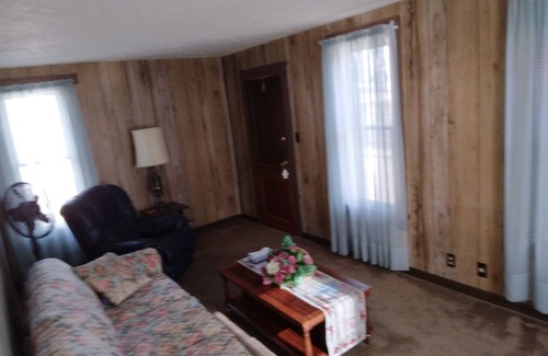 Located center of town, 1 bedroom house. 1/4 unfinished basement with washer/dryer. Upstairs has all been refinished (unprofessionally) by me, lol , Recently replaced bedroom, living room, dining room with all new carpet. It's overall a good solid little house. A real nice queen sized bed, dresser, small dining table with 4 chairs, sofa bed in living room makes into a full sized mattress. Not fancy, just clean comfortable and quiet. Small 32"TV, FREE 155 channels, DirectTV. Netflix & Wi-fi.