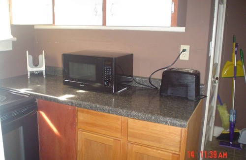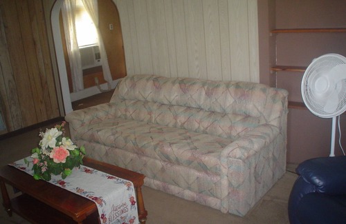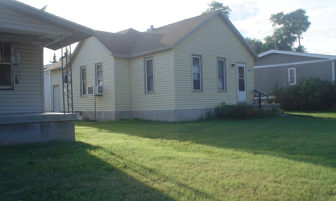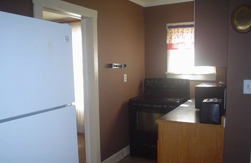 Located center of town, 1 bedroom (old) house. 1/4 unfinished basement with washer/dryer. Upstairs has all been refinished (unprofessionally) by me, lol , Recently replaced bedroom, living room, dining room with all new carpet. It's overall a good solid little house. A real nice queen sized bed, dresser, small dining table with 4 chairs, sofa bed in living room makes into a full sized mattress. Not fancy, just clean comfortable and quiet. Small 32"TV, FREE 155 channels, DirectTV. Netflix & Wi-fi.