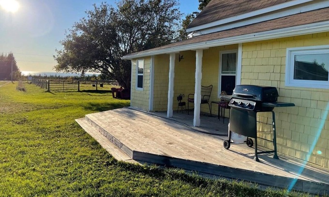 The Little Yellow Farm House is a cozy, quaint, small century farmhouse with modern amenities incorporated. The main room is a comfy gathering area with an interior gas fire stove, smart tv and Wi-Fi. There is large cook and eat in kitchen with complete cooking and dishware and some complimentary items, such as products from Prince Edward Island's local wineries. The front yard has a fire fire pit with a view and sound of the ocean, beautiful sunsets and quiet country surroundings. The property comes with a small propane BBQ for use and also a large fenced corral for those who wish to bring furry friends to run free in an open area while secure from wandering. The upper floor has one adult bedroom fit for a couple; a fun bunk bed bedroom for two kids and a kid inclined area with interesting books and crafts as well as beach toys for the sand. The bedrooms have large closets along with a fold away crib for an infant. There is also a private front bunk room to accommodate an older child or single person on the ground floor. The bathroom is on the ground floor with modern amenities. There is an open beach within walking distance and much to explore in the surrounding area of Acadian culture. The house is fully furnished along with games, movies and books fore everyone to be entertained. There is an amazing goat farm up the road open to tours and and animal interaction (Beach Goats). Make the The Little Yellow Farm House your own home away from home and relax for a long weekend; a week; two weeks or a month! Once you stay, you won't want to leave...