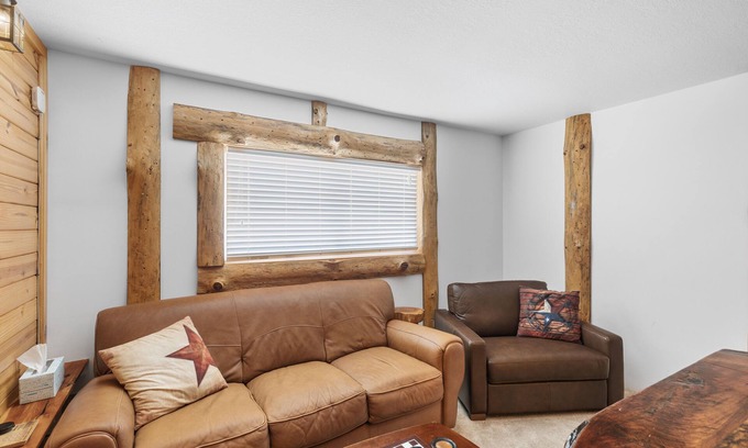 Fully equipped kitchen surrounded by beautiful dark walnut bar, 65" Roku TV w/premium cable, HBO Max, Amazon Prime and many other premium Apps. Plush Aniline leather couch and chair, in house laundry, and upper loft with queen size DreamCloud Hybrid Mattress and Roku smart TV. Also, there is a large covered parking area directly outside of the front door large enough to accommodate 2 small vehicles.