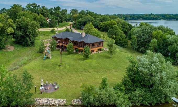 Custom 4000 sq/ft log cabin on 500 feet of premium lakeshore, 2 acres on beautiful Big Sauk Lake in Sauk Centre, MN. Only 100 miles from Minneapolis makes this the perfect getaway destination! Enjoy the lake, go fishing, relax by the bonfire, & visit local establishments, such as the Diamond Point Steakhouse (within walking distance), Saukinac campground & Birchwood Resort! A dock is available for use; the boat launch is 0.5 miles away. Pontoon rental is available from Birchwood Resort.