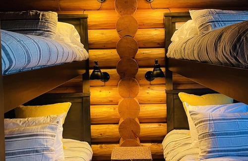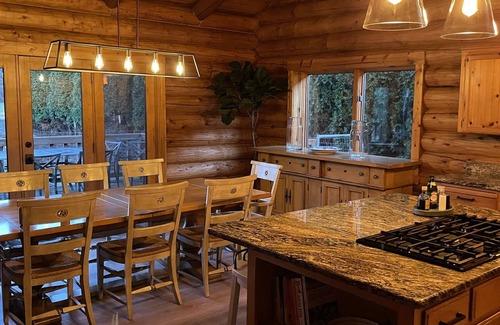 Magnificent, custom 2,000 square foot log home on 100 acre sustainable family farm. The Lodge at Dolan Creek was completely refurbished from top to bottom in 2021. With two king bedrooms and a bunk room for the kids, it is the perfect escape for families looking to connect and freely roam. No detail was overlooked, from a fully stocked gourmet kitchen to 400 thread count sheets. Pour a mug of coffee and watch the sun rise over Mt Hood. The Lodge is a space to connect, unwind and recharge.