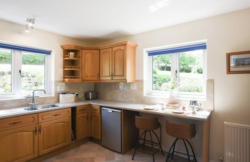 Shower Room: Double Shower, Heated Towel Rail, Toilet. Oil central heating, gas. electricity, bed linen, towels and Wi-Fi included. Initial fuel for wood burner included. Travel cot, highchair and stairgate. Welcome pack. External utility room with washing machine and tumble dryer. Grounds with patio, sitting-out area, garden furniture and barbecue. Bike store. 1 small dog welcome. Private parking for 2 cars. No smoking.. Welcome to The Lodge at Harvest Farm, your idyllic countryside retreat perfect for families and friends. Nestled in the heart of picturesque countryside, The Lodge offers the ideal blend of comfort and tranquillity, ensuring a memorable holiday for all. The traditional-style kitchen is fully equipped with everything you need for a comfortable stay. It features a breakfast bar, a huge 5-ring gas hob, and a double oven, making it a delight for anyone who loves to cook. For added convenience, there’s a ground-floor loo and a well-equipped utility room.