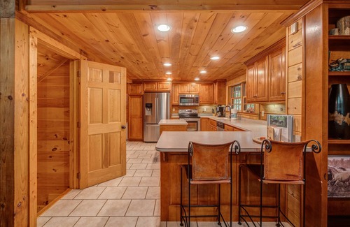 Nestled in the beautiful North Georgia Mountains sits one of the premier vacation cabins in the entire Southeast. This luxury cabin sits on over 10 acres of secluded forests (over 500 acres adjacent to property is held in conservation) and is the ultimate setting for your next family vacation, corporate event or romantic get-away. This home was originally built in 2002, and then added on to in 2005, making this one of a kind vacation home the perfect blend of rustic mountain living combined with the latest in luxury comfort. This lodge has everything from hiking trails and beautiful streams all the way to WIFI open broadband Internet and three HD TV's with satellite. The lodge was painted on the interior in May 2023 with all new carpet on the stairs and in the bedrooms, and new flooring in the Kids' Room installed in September 2023 for an updated look.