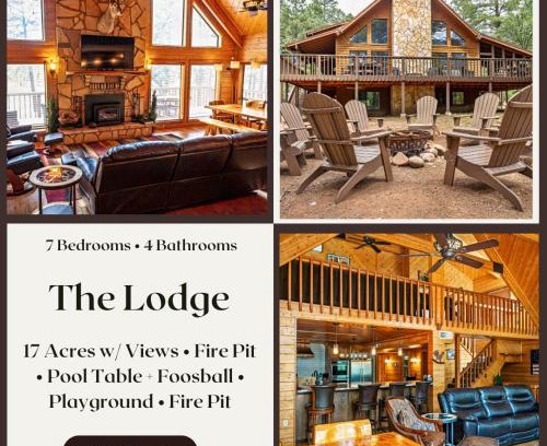 Providing a shared lounge, The Lodge Large Cabin, 17 Acres, Playground, Forest Access offers accommodations in Pinedale. This property offers access to a balcony, pool at the pool table, free private parking, and free Wifi. On clear days, guests can head outside to enjoy the vacation home's outdoor fireplace or simply kick back and relax. The air-conditioned vacation home consists of 7 bedrooms, 2 living rooms, a fully equipped kitchen with a dishwasher and a coffee machine, and 4 bathrooms with a bath and a hair dryer. Towels and bed linen are provided in the vacation home. There's also a seating area and a fireplace. For guests with children, the vacation home provides an indoor play area, outdoor play equipment, and a baby safety gate. The vacation home has a picnic area where you can spend the day outdoors. The nearest airport is Show Low Regional Airport, 21 miles from The Lodge Large Cabin, 17 Acres, Playground, Forest Access.
