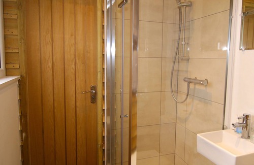 A one-bedroom wooden garden lodge with kitchenette/diner lounge, shower room/toilet and bedroom, situated adjacent to the garden of the owners house separated by a high hedge and next to stunning woodland. The property offers one super-king bed and two sofa beds. An iron and ironing board are provided as well as a fridge and there is a microwave but no oven/hob. The property is suitable for dogs as there is an enclosed yard area outside the property.