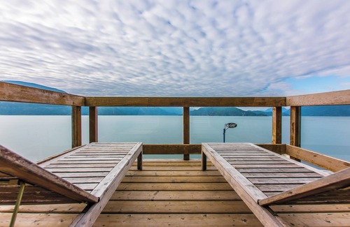 Cabin One comfortably sleeps 4 in two bedrooms with queen-size beds. It offers a full bathroom with a chic walk-in shower, an elegantly decorated kitchen and a private outdoor BBQ and entertaining area. Every room in the cabin boasts gorgeous floor to ceiling windows with unbeatable waterfront views. Fall asleep to the tranquil sound of the waves lapping against the shoreline.