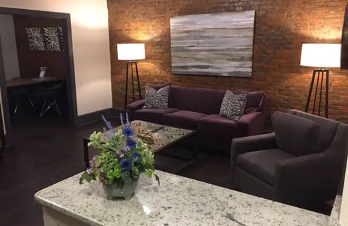 Enjoy your stay in this newly renovated loft apartment, located smack dab in the middle of this small town’s historic downtown commercial district. Complete with full kitchen, living room, dining room, and laundry room, this apartment has everything you’ll need. Bedrooms feature king size beds and en-suite baths with luxury linens, cable television and wifi. This upscale, executive style, loft apartment, in a 1900 historic building, is quickly becoming THE place to stay in Maury County.