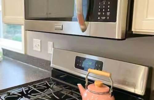 The Loft Haus has a fully stocked kitchen, and everything you need is here! The stocked coffee bar means you have everything you need to brew your morning /afternoon cup; french press, ninja Coffee maker, coffee, creamer & sugar.