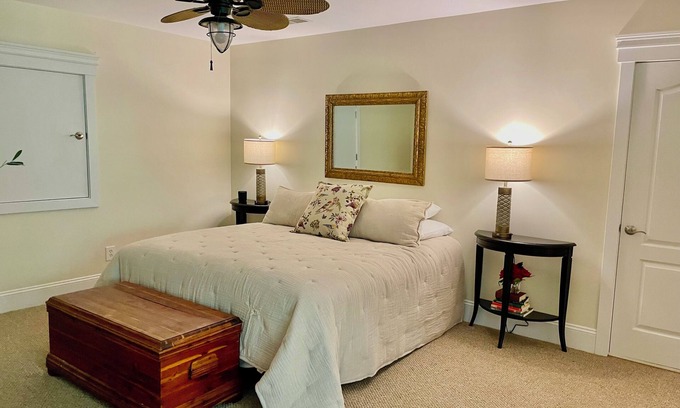 The Loft Apartment in Lake Norman is your perfect getaway, nestled in a serene wooded setting just minutes from all the area's top destinations. This 1000 sq ft loft offers everything you need for a relaxing stay, including a California king bed, 3 blow up mattresses, comfortably sleeping 5 guests. With its double vanity sink bathroom and a cozy kitchenette, you'll feel right at home. Apple TV, High speed internet, very private. Private entrance off garage. 1.5 miles to downtown Davidson/ 2 miles exit 30. 3 miles from downtown Mooresville.
