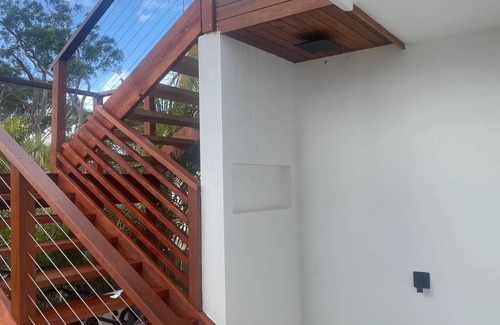Discover our architect-designed two-bedroom loft, a modern secondary dwelling bathed in natural light through raked ceilings, Luxuriate with premium appliances, bespoke hardwood finishes, latex mattresses in King and Queen bedrooms, AC, breakfast bar and Netflix add convenience. Step into a private courtyard with a barbecue or enjoy the shared pool and hot tub. 5 mins away, discover the beach, cafes, restaurants, and supermarket. Your oasis of modern sophistication and coastal charm beckons