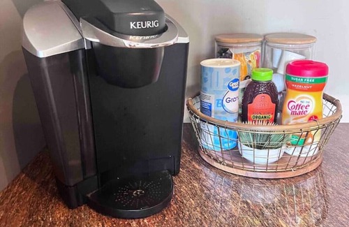 The kitchen is fully stocked with all the necessities for cooking or entertaining, and sipping some wine or coffee.