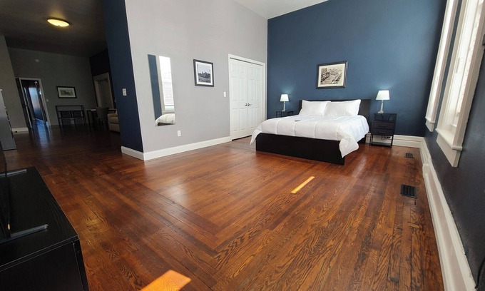 This historical loft features easy self-check in with a private keypad entrance and free parking directly across the street. Enjoy short walks to all that Downtown Adrian has to offer with all the amenities of a hotel room and more.