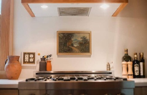 We’ve updated the kitchen to include high end appliances by ZLINE. The dining room has seating for ten people and opens up to our backyard patio, complete with a smokeless fire pit surrounded by Adirondack chairs, a propane grill, picnic table, and a striking cedar sauna. Step out of the queen bedroom on the first floor for direct access to our luxurious cedar barrel hot tub.