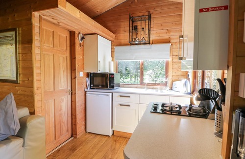 Amenities: Electric central heating, with additional heating from woodburning stove in sitting room. Gas hob, microwave, fridge, TV with Freeview, selection of books and games. Electricity and starter pack for woodburning stove inc. in rent. Bed linen and towels inc. in rent. Off road parking for 2 cars. Front decked terrace with unfenced pond. Sorry, no pets and no smoking. Shop and pub 4 miles. Note: Due to the unfenced duck pond, children must be supervised at all times. Note: No dining area.