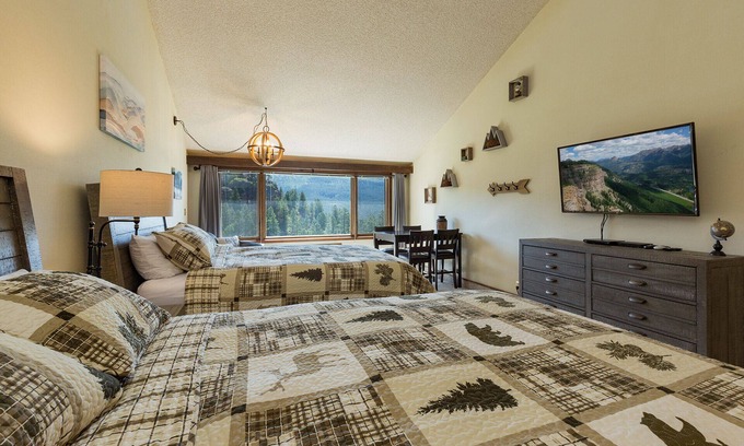 The Lookout at Tamarron Resort (Lodge #406) is our studio condo with high ceilings, a kitchenette and views. It is conveniently located near the resort amenities including golf course, heated pool, hot tub, and fitness center.