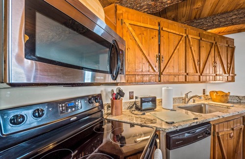 As you enter, you'll notice the rustic décor with exposed log walls and all the comforts of home. The living room features a big comfy couch, fireplace, flat-screen TV and the cutest window seat ever …perfect for reading a good book.