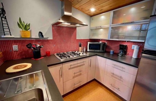 This unique place has a style all its own. The Lookout is a colorful modern loft tucked away in the scenic mountains of Germania, Pennsylvania. This getaway is ideal for those seeking peace and quiet or those looking for outdoor adventures. Conveniently located on ATV and snowmobile trails and surrounded by 5 state parks. Enjoy stargazing, hiking, biking, fishing, hunting, paddling and more.