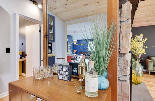 The LoveShack - MidCenturyModern w hot tub in the Poconos offers an idyllic setting for couples seeking a romantic wedding getaway or a cozy family gathering. With its beautifully renovated mid-century charm and modern amenities, this property is sure to create memorable moments on your special day.