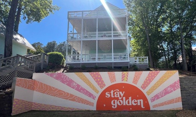 The private pool, various decks, outdoor firepit, private dock, grill, gazebo with swingset and cabana add space everyone can enjoy. Our mural provides the perfect backdrop for Instagram worthy vacay photos. The owners have furnished two kayaks, outdoor games, a cabana with bar space including a refrigerator and wine cooler, a swingset for the little ones with grill area for prepping the perfect meal. Our murals complete the outdoor vacay vibes.