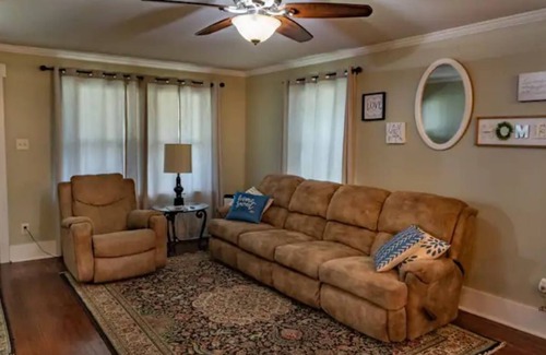 Lucy House is a relaxing getaway, whether you are kicking back on the spacious front porch or enjoying coffee in our large living area inside. The feeling is calmness and peace at Lucy. Feel free to have a beverage, an array of teas and coffees are provided, and visit with family or friends. We offer 2 main floor bedrooms, sleeping 2 each and 2 upstairs bedrooms, sleeping 1 and 2. Central air and heat make for a very comfortable stay. We have a bathroom on main floor which is very handy.