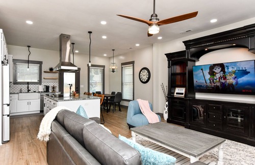 This Luxury Mill is a fully updated home conveniently located close to Downtown. The furniture, appliances, and functionality will make our guests feel cozy and comfortable. Thoughtfully decorated. Perfect for group travelers who visit Greenville. The home offers open space for our guests to enjoy their time together. The master bedroom is absolutely to die for!! Featuring a king bed with its own ensuite bathroom, custom double sink, custom tile, and a RAIN HEAD SHOWER! The place also offers a beautiful patio with a fire pit that aims to provide our guests with a relaxing area to sit, gather around, and just enjoy the night with some good company! It’s also perfect to lounge on the day with some tea or coffee and snacks. This is a wonderful place to relax and stay after a day of activities. + We are equipped with EV charging capability.