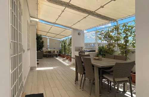 Located on the top floor with a panoramic view, this apartment offers a large furnished terrace, perfect for al fresco breakfasts or dinners. With three spacious bedrooms, two modern bathrooms, a welcoming living room, and a fully equipped kitchen, it's ideal for families or groups. Fast Wi-Fi and a convenient location near shops and public transportation are just some of the features. A perfect blend of comfort, relaxation, and convenience for an unforgettable stay. Book now and enjoy a comfortable and unforgettable stay!
