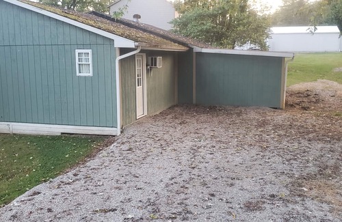 This is our "back unit" that is accessible from the gravel lane that runs along the side of our property and has a gravel driveway/ parking area.