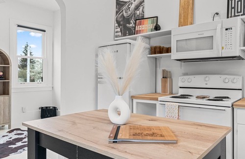 Relax in a thoughtfully curated space filled with cozy furnishings and modern styles, designed with you in mind. The fully equipped kitchen, complete with a coffee bar, is perfect for all your cooking and sipping needs. Additional amenities throughout the home ensure a fantastic experience during your stay. The Main St. Oasis is the perfect blend of relaxation and exploration.