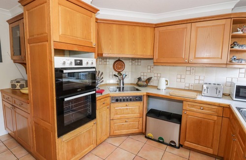 Amenities: Gas central heating and electric fire. Electric double oven and hob, microwave, fridge, freezer, dishwasher, washing machine, tumble dryer, TV with Freeview, DVD and WiFi. Fuel and power inc. in rent. Bed linen and towels inc. in rent. Highchair available. Off-road parking for two cars. Front lawn and rear patio with furniture. Two well-behaved pets welcome. Sorry, no smoking. Shop 0.6 miles, pub 0.4 miles. Note: More pets may be accepted with prior arrangement with the owner. Note: The owner lives on-site