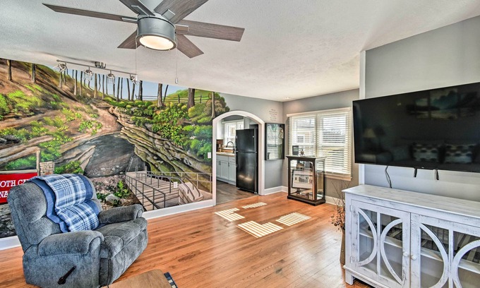 Get the full experience of the Mammoth Cave National Park when you book 'The Mammoth Cave Rock House!' This Brownsville vacation rental has 3-bedrooms, 2 bathrooms, was designed with nods to the Mammoth Cave throughout, and is located by both the park and the museum. You and your family will have a blast exploring this Kentucky treasure, as well as other nearby museums and parks. In the evenings, throw something on the grill for dinner, then share s’mores and conversations around the fire pit.