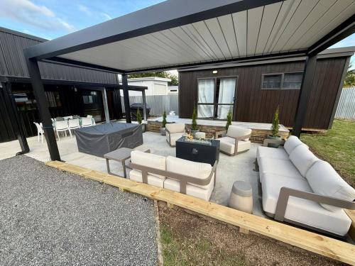 The Mango Shed is a recently renovated vacation home in Mangakino where guests can make the most of the garden and barbecue facilities. There's a sun terrace and guests can use free Wifi and free private parking. The vacation home features 4 bedrooms, a fully equipped kitchen with a dishwasher and a microwave, a washing machine, and 1 bathroom with a hair dryer. Towels and bed linen are featured in the vacation home. The property has an outdoor dining area. Guests at The Mango Shed will be able to enjoy activities in and around Mangakino, like hiking and walking tours. Skiing, cycling, and fishing are possible within the area, and the accommodation offers ski storage space. Taupo Airport is 43 miles away.