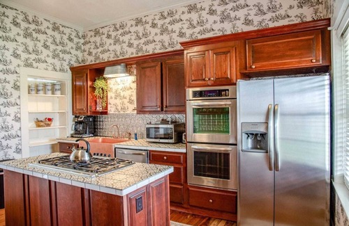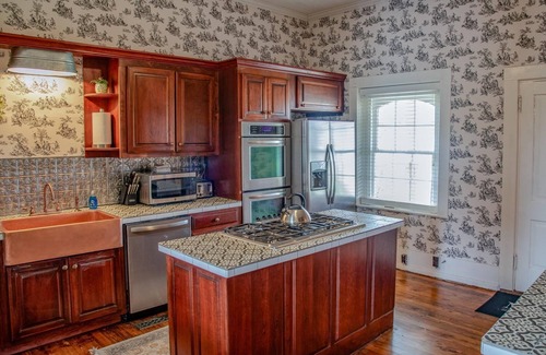 This beautiful two-story brick home is perfect for large family and friend gatherings with almost 5,000 square feet of living space. The downstairs features a formal dining room, quiet sitting room, breakfast room, full kitchen, living room, bedroom (#1) king bed, and a bathroom with shower & clawfoot tub.