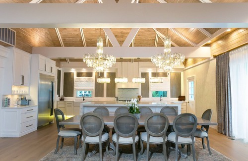 Your stay at The Manor House is enhanced by a wealth of amenities designed for comfort and relaxation. Each of the three bedrooms and 3.5 bathrooms offers ample space for you and your guests to unwind after celebrating your special day. Gather in one of the two spacious living rooms or whip up a meal in the state-of-the-art designer kitchen, all while enjoying high-speed internet throughout. The property also features a sparkling pool and beautiful outdoor spaces perfect for lounging and entertaining friends and family, making it a versatile choice for wedding accommodation.