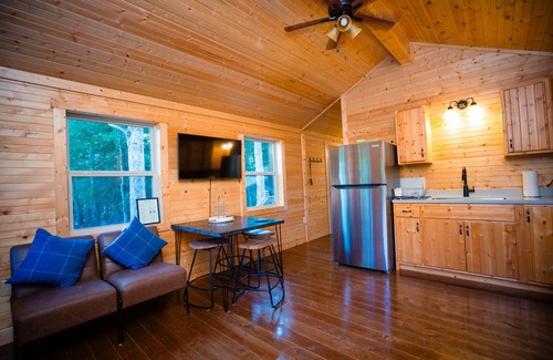 Every cabin at The Maple Retreat is filled with modern amenities. The fully stocked bathroom with a walk-in shower includes a Rain shower head, as well as shampoo, conditioner, body wash, and fresh towels. Our kitchen is stocked with cookware, glassware, utensils, and stainless steel appliances. Our quaint, well-appointed cabins are hidden away in forested splendor. You will enjoy all the peace and quiet nature has to offer, while also taking advantage of many modern amenities. That includes two bedrooms, a kitchen, bathroom, washer and dryer, smart TV, WiFi, and much more. Enjoy the simple life without giving up your simple pleasures.