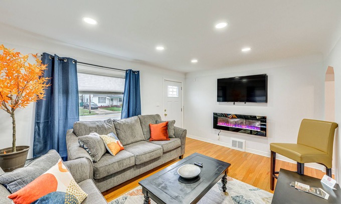 'The Maple Tree' Home: 14 Mi to Downtown Cleveland is located in Maple Heights. 'The Maple Tree' Home: 14 Mi to Downtown Cleveland provides accommodation, featuring Air Conditioner, Balcony/Terrace, Security/Safety, among other amenities. This House features Air Conditioner, Balcony/Terrace, Security/Safety, to make your stay a comfortable one.