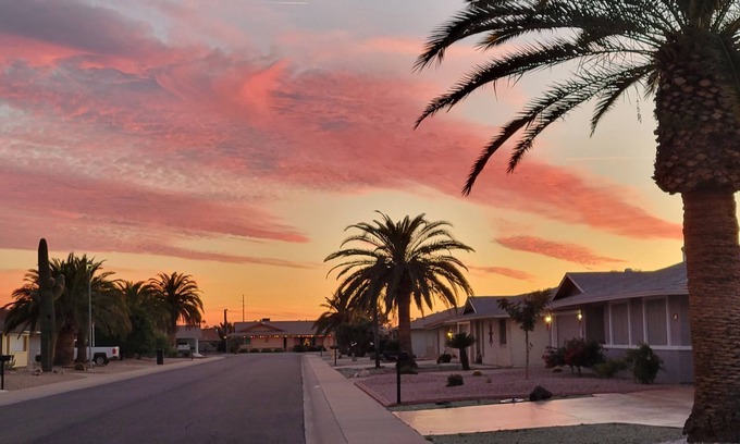 With all the modern amenities, The Marilyn House is a perfect desert escape for families, friends and couples. Quiet 55+ community located very close to malls, shops, restaurants, Pleasant Lake and sporting venues: 2 miles from the Peoria Sports Complex and 11 miles from Cardinal /State Farm Stadium. Access to 7 golf courses+ 6 Rec Centers/pools and miles of paved biking trails close by, this cozy place offers something for everyone!