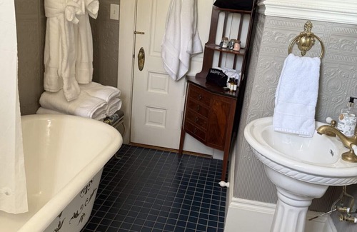 - An original clawfoot bathtub, perfect for soaking away your cares in a delightful vintage setting.