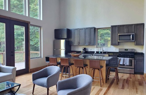 The perfect mountain escape, just at the gates of Heaven. This open loft cabin sets just 4 miles from Max Patch Bald, aka Heaven. Hike the AT, visit the Bald for a picnic and unbeatable views, and make yourselves comfortable in this lovely little pond-side hideaway.