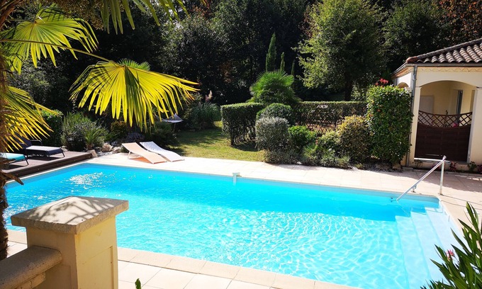 In a property nestled in the heart of a Perigord forest, you can enjoy a warm environment for your family, friends or couples just 8 minutes from Périgueux. The Domaine du "Mas des Geais" enjoys a beautiful environment. Here your stay, will turn into a real invitation to the relaxation and to the multiple pleasures of Périgord. This single storey cottage of about 50m ² has all the necessary comfort for a stay in peace. A spacious room, a fully equipped kitchen, the cottage gives access to the heated pool (10x5) to share with the other 2 cottages and owner. Various free activities: jacuzzi, table football, ping-pong, badminton, petanque, sports equipment (bike), adult and children's bicycles for walks, children's playground, board games