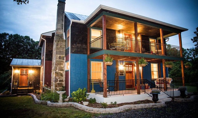 Introducing The Maury River House: Small Event Venue and Stay! Want to have a small intimate gathering of up to 50 guests in a picturesque location AND sleeping accommodations for 14 of your guests? Well now you can! Originally built in 1870 & nestled in the beautiful Allegheny mountains of Rockbridge Baths, VA, The Maury River House and property blends classic charm and contemporary pleasures with a verdant natural landscape perfect for any small celebration.
