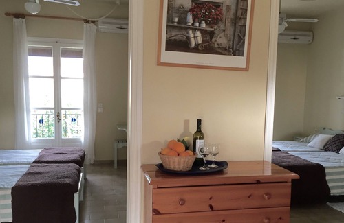 The ideal choice for an economic relaxing holiday - Top on Tripadvisor in our category! A small, attractive complex, of studios and 2 bedroom apartments, with a large swimming pool and separate kid's pool. They are conveniently located about 7 or 8 minutes walk from the beach, and only 3 or 4 minutes walk up the drive to the shops and restaurants of the village of Moraitika, which is well known for its sandy beach and calm waters, ideal for kids. The property is in lovely gardens in a peaceful olive grove.