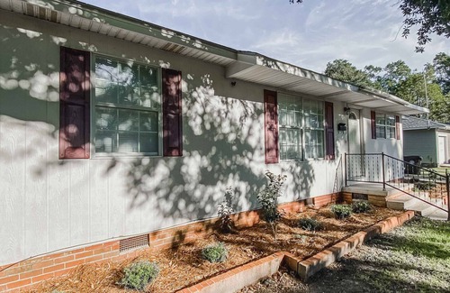 Enjoy the coziest accommodations in town in this ranch-style home located on a quiet street. The home features 3 bedrooms, a full kitchen stocked with essentials, and a fully fenced-in backyard. Each of the 3 bedrooms has a different brand mattress with varying firmness/softness so that there is something for everyone. It's perfectly located steps away from The Long Leaf Trace and Colludium Brewing Company.