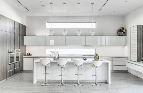 Soaring ceilings with giant skylights provide a dramatic greeting as you enter this Mansion. The designer oasis boasts, pool, spa with waterfall, custom cabinetry, built-in barbecue, outdoor shower, and cabana / flex space. This architectural gem features all top-of-the-line finishes that envelop one as soon as they're fortunate enough to step foot inside. Case in point, 'tis a truly "smart home" that allows one to control all of its dynamic functions from the touch of the wall-mounted iPad.