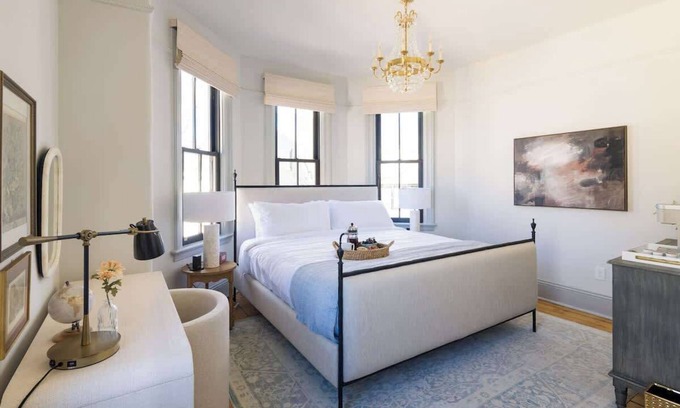 Welcome to Newport’s premier luxury suite, experience the charm of seaside elegance in our restored luxury estate. Located in the heart of downtown just steps away from Thames Street and Bowens Wharf! Putting you right in the middle of the best shopping, dining, and nightlife. Enjoy spaces like the fully stocked kitchen, beautiful backyard with a gas fire pit, and EV charging stations. Just one block from the water, you’ll be surrounded by Newport’s rich history and vibrant waterfront scene