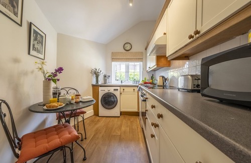 Set over one floor, the sitting room with its wonderful vaulted ceiling and exposed beams is central to the cottage layout and gives a feeling of great space, whilst the wood burning stove offers a cosy retreat for the evenings. The kitchen is well-laid out and well-equipped for all your needs, including a breakfast seating area, allowing you to plan the day ahead over a hearty breakfast. The two well-appointed bedrooms have been tastefully furnished and ensure a great night's sleep for all.