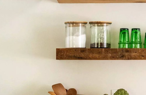 The bright and airy loft sleeps two people, with bedding by Casper and Brooklinen to ensure a comfortable and restful stay. For additional guests, there's a sleeper sofa in the living room. Accessibility note: the loft is only accessed by a (stunningly custom-built) ladder.