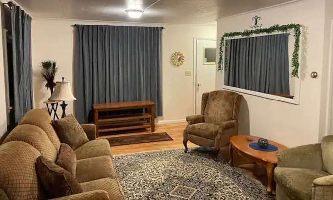 Your stay at The Miners’ Hallow includes a range of amenities designed for comfort and convenience. Enjoy a freshly made bed in one of the two well-appointed bedrooms, one featuring a firm mattress and the other with a soft touch. A spacious gathering room invites you to relax with your loved ones, complete with fast WiFi and internet TV. The fully equipped kitchen allows for light cooking and coffee brewing, while the cozy bathroom features laundry facilities. Don’t forget the delightful backyard shed/bar that offers stunning views—ideal for post-wedding celebrations or quiet evenings under the stars.