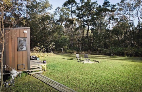 The Mini Chalet by Tiny Away is a farm stay located in the peaceful suburb of Mundoolun, just 18 minutes from Beaudesert. This tiny house is part of our collection of unique holiday homes, offering a quiet rural escape surrounded by lush landscapes and beautiful views.