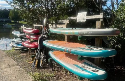 - Kayaks, paddle boards, life jackets.